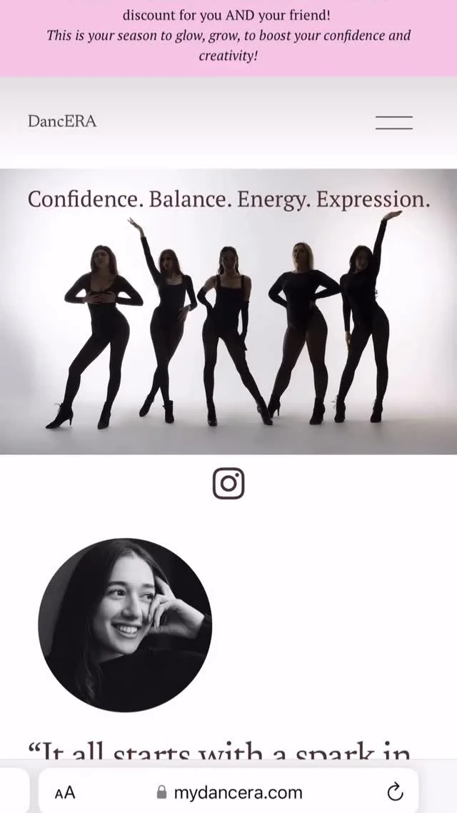 “Your confidence starts here! Welcome to your new era — Dancera.”